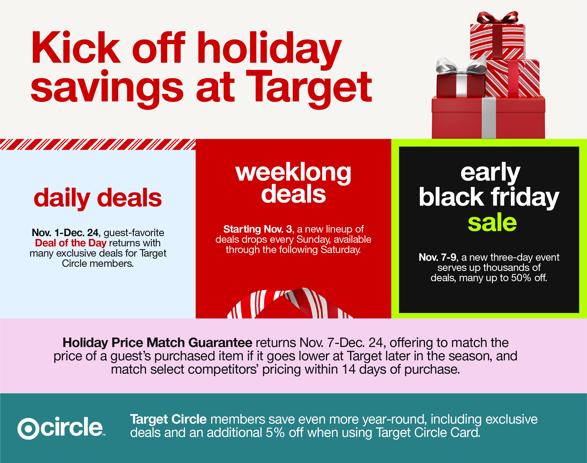 Back in October, in its Circle Week press release, Target shared that its Deal of the Day program is making a comeback this year! From Nov. 1 to Dec. 24, new deals will be shared to Circle members each day. Last year, Target Circle members saw limited-time deals on everything from Apple tech gadgets to Nintendo gaming consoles.